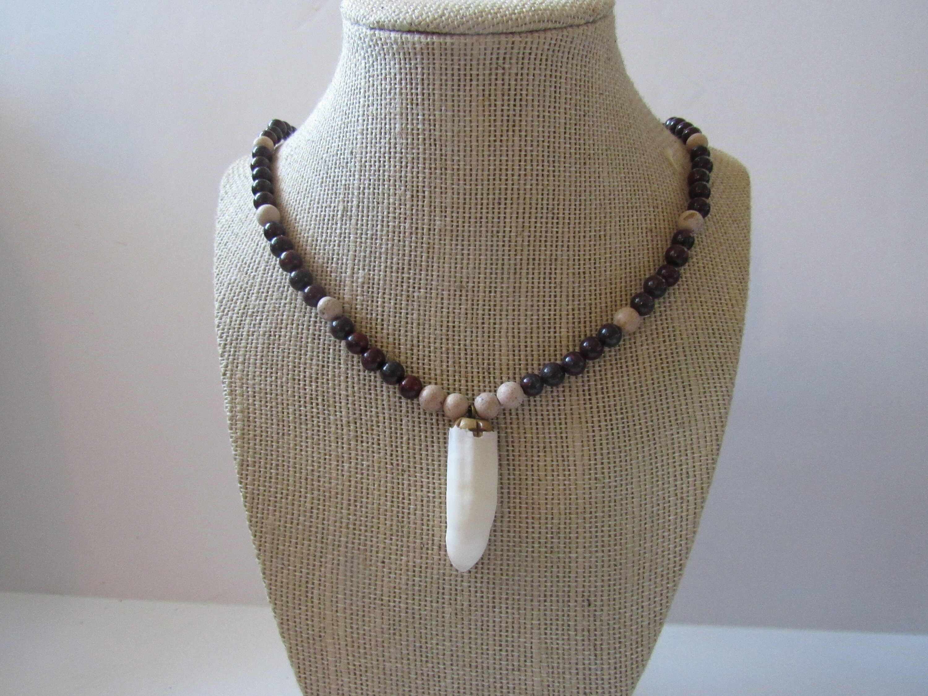 The pendant measures 2 l x 1/2 w from the top of the bead cap to the tip of the tooth.