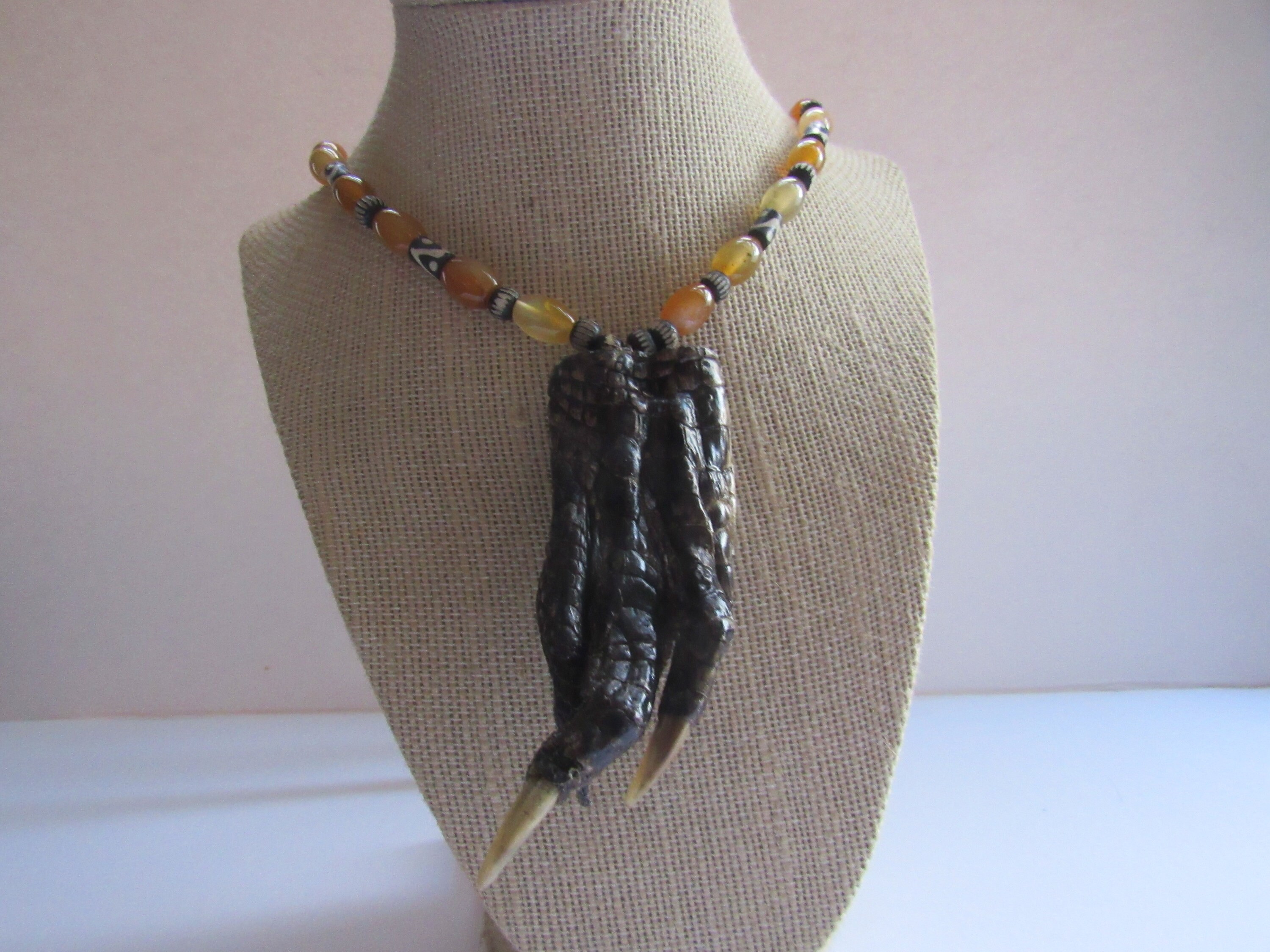If you want a quick look, jump to our infographic at the end of the article that features all the types of clasps we talk about in the article. Alligator tooth & claw jewelry. The crocodile symbolic meaning concerns much more intense spiritual realms than most other tranquil animals. What is it made of? she asked. Animal totem jewelry by the foxloft. The simple style has silver beads and the teeth are drilled with a silver cap. I suppose, she said patronizingly, alligator's teeth mean as much to you as pearls do to us. oh, no, he objected. The necklace length in the picture is 18 inches (46cm). You will also notice that the gator teeth are hollow. In various folklore, alligator teeth are also believed to possess the power to heal the body and to counteract poison. These teeth are approx 2 1/2″ long!! The alligator teeth are put into a mojo bag for gambling luck, much like the rabbit's foot. Gold plate buckle $3.00 lootable item.